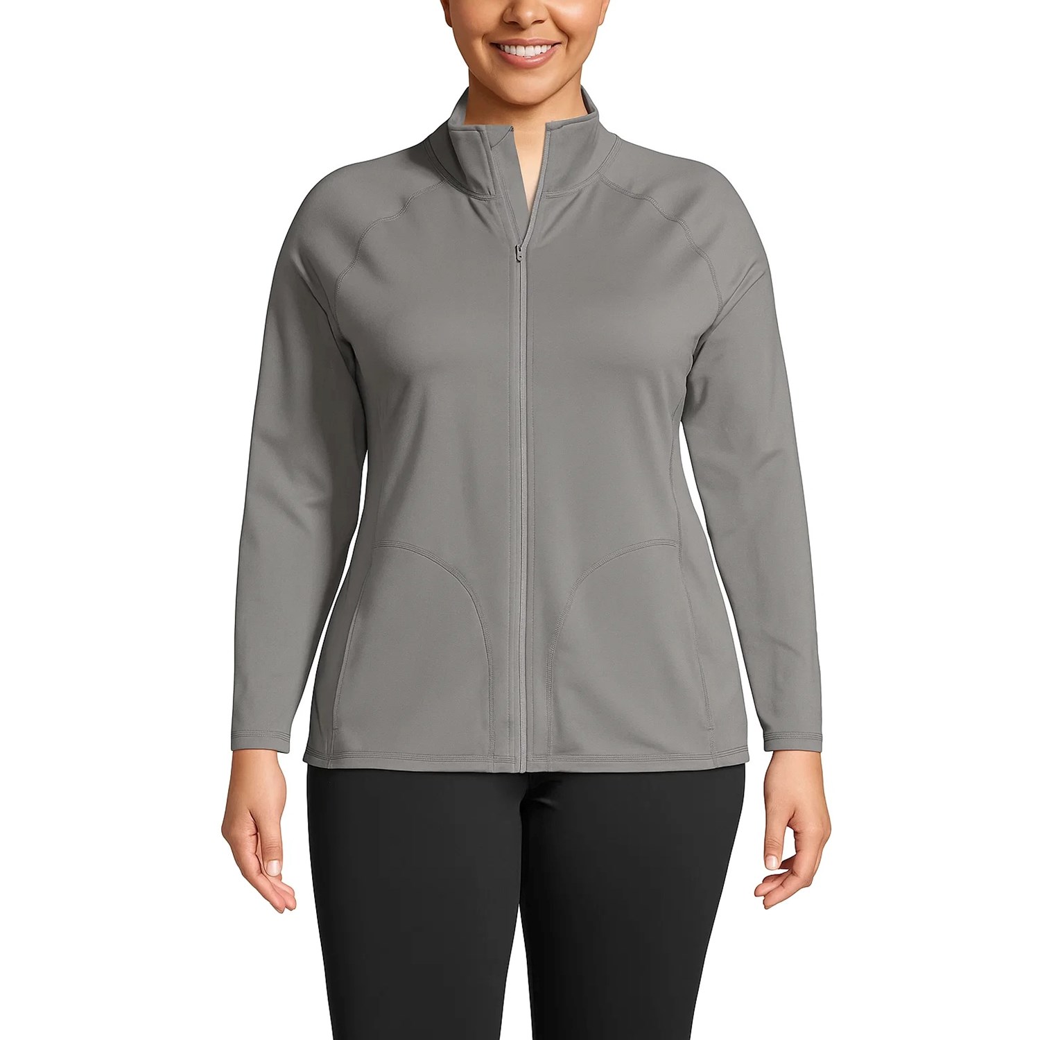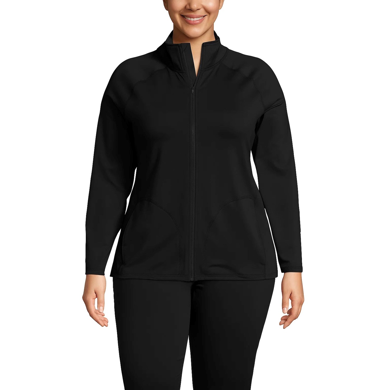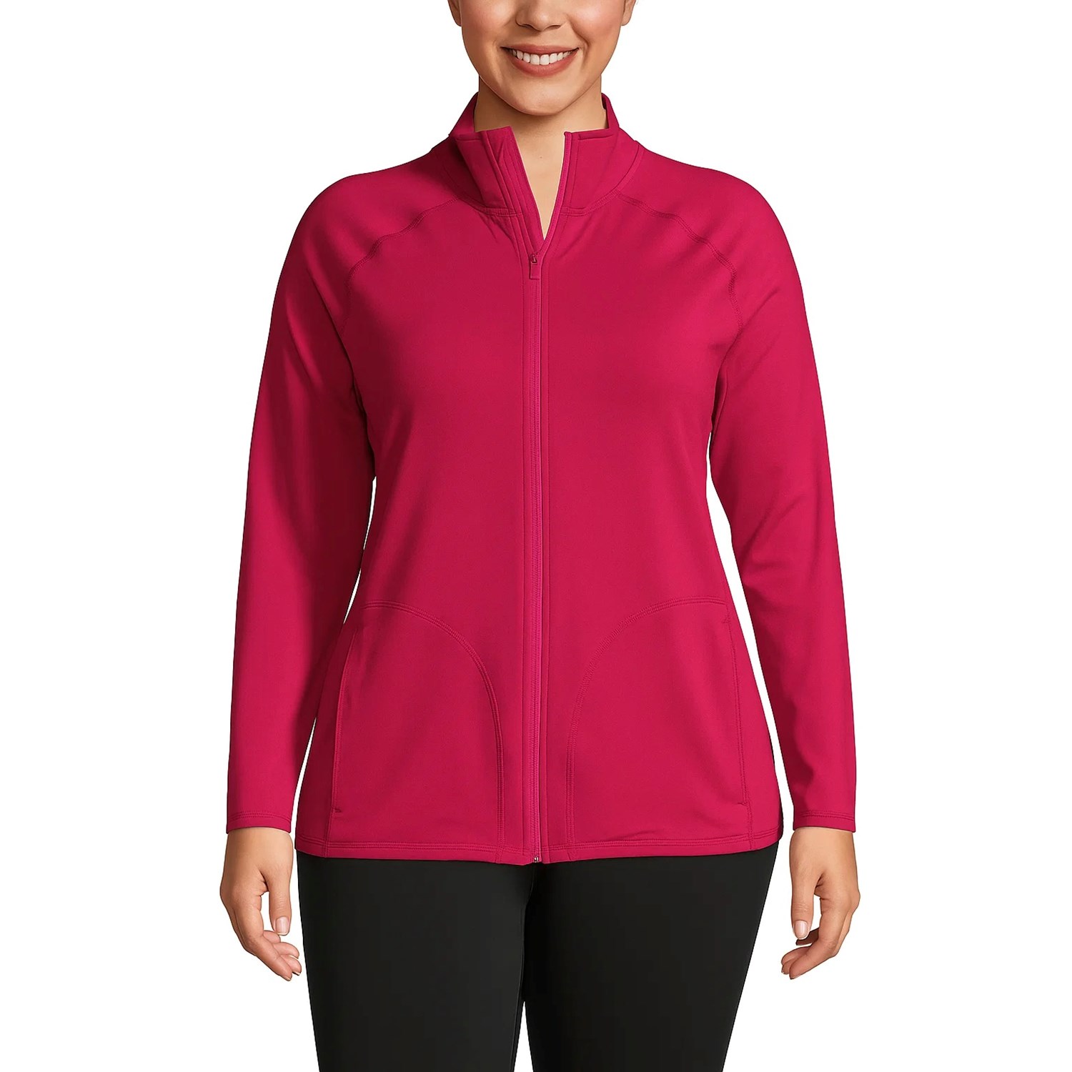 Made from lightweight, moisture-wicking stretch fabric, it keeps you dry and comfortable while you move. A contoured yet relaxed silhouette, full-zip front, and stand collar give it a modern edge, while thumbhole cuffs and secure zip pockets add practical touches.