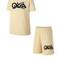 Two-Piece Set: Matching t-shirt and shorts for an easy coordinated look.